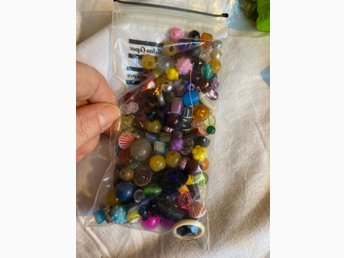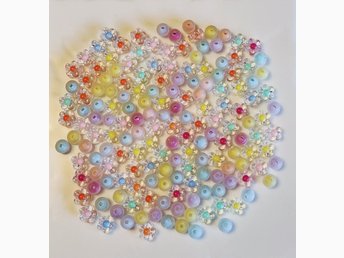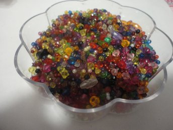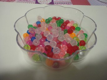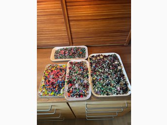 138 gram pärlor mestadels i glas och plast till dockskåpet till flaskor vaser