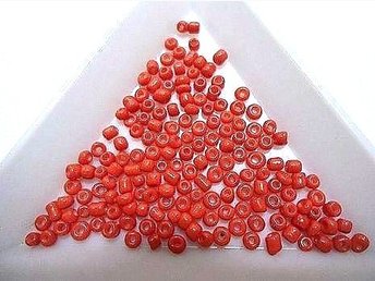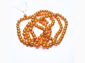 En sträng (ca 135 st) orange pärlimitation glaspärlor 6 mm
