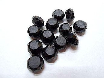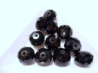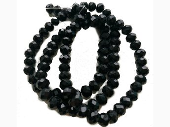 En sträng (ca 100 st) fasetterade svarta glaspärlor 6x4 mm