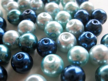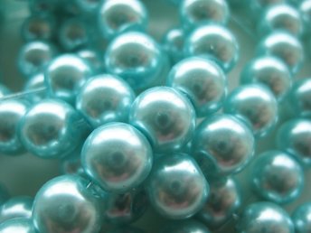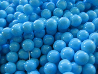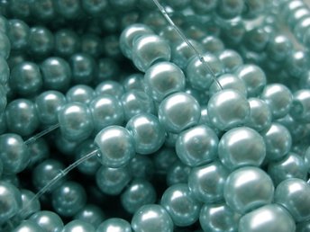En sträng (ca 110 pärlor) 8 mm pärlemorskimrande turkos glaspärlor