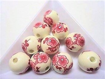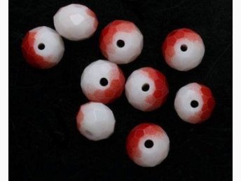 En sträng (ca 110 pärlor) 8 mm pärlemorskimrande röda glaspärlor