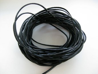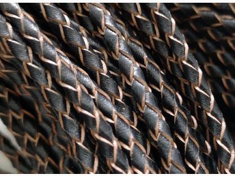 1 meter flätat lädersnöre 3 mm i diameter, svart/brun