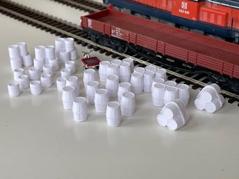 Samling av Trätunnor i PLA, 28 st, Skala H0 1:87, NYA, Serie 3, Vita