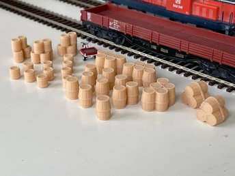 Samling av Trätunnor i PLA, 28 st, Skala H0 1:87, NYA, Serie 3, Natur / Beiga