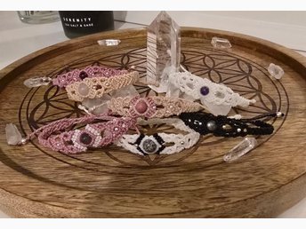 Armband med Kristaller - Handgjorda med makrame