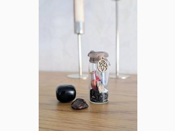 Protection spell jar "skyddsburk", trumlad granat ädelsten & svart Obsidian