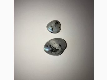 Två regnbågsmånstenar med blått skimmer / sten kristall / andlighet