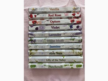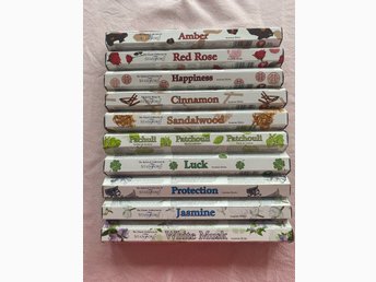 Stort paket rökelser. 10 olika dofter, 200 pinnar