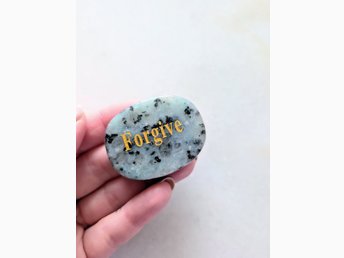 Kristall Sesame Kiwi Jasper worry stone. Sten med budskap "Forgive"
