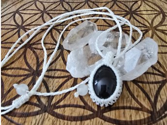 Halsband makrame - obsidian