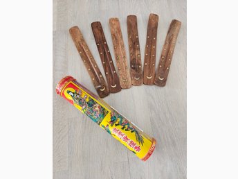 Rökelse och 6 st rökekseskidor i trä