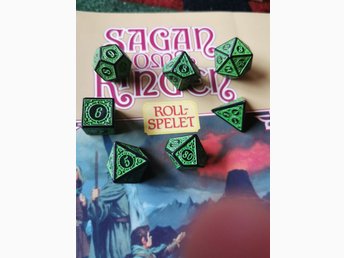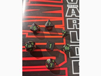 7 st olika tärningar till Rollspel. D&D, Warhammer. svart/grön