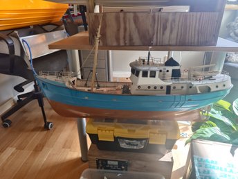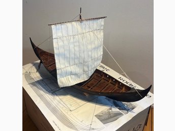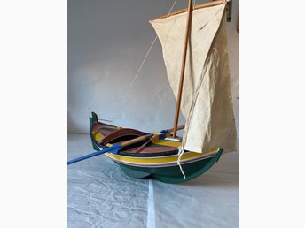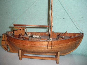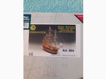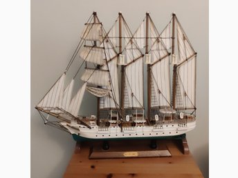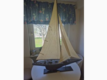 Stor modellbåt “Endeavour” – segelbåt i trä, maritim inredning