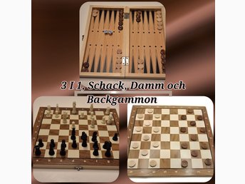 3-i-1 Brädspel – Schack, Damm och Backgammon i Trä för Resor
