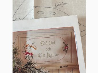 Komplett broderi. JULBONAD. Påritat linne, garn, mönster. 38 x 69 cm