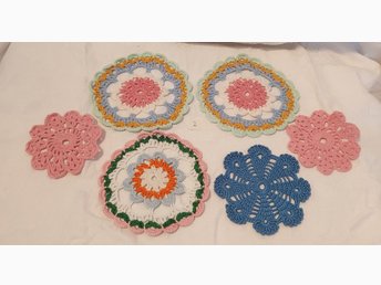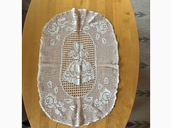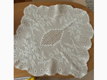 Fin VIRKAD duk. Virkad med tunnare halvblekt bomullsgarn. 53 x 55 cm