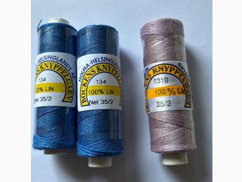 3 st KNYPPELGARN 35/2 färg nr 1310. 134. Bockens knyppelgarn.