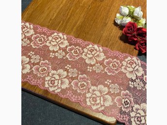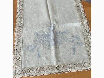 Påritad JUL löpare med spets. Halvblekt halvlinne. Ej garn o mönster. 40 x 94cm