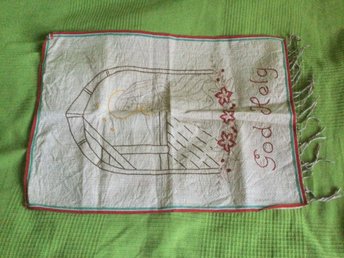 Handbroderad duk med fransar korsstygn