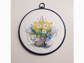 Korsstygnsmönster med broderigarn och tyg