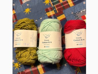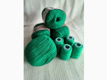 Garn Virkgarn Friends Cotton 8/4 En nystan 50gr ljusgrön, restgarn 58gr