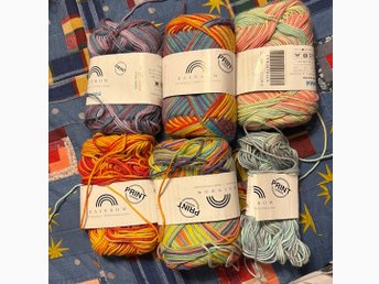 Garn Virkgarn Rainbow 8/4 Restgarn Totalt 153gr 100% Printed bomull