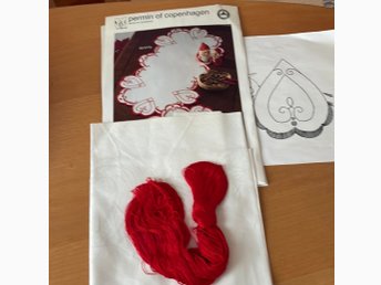 Påritad duk. . HJÄRTAN. Påritat bomullsväv, garn, mönster. 40 x 78 cm