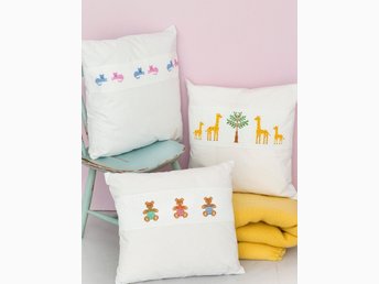Broderimönster. Brodera små söta djur till barnkammarens kuddar.