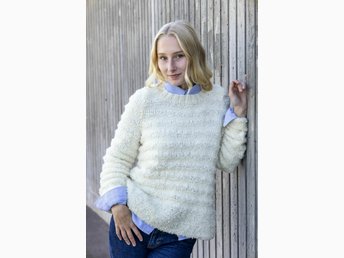 Stickmönster: Sticka en tröja med ränder i pälsgarn, storlek XS-4XL.