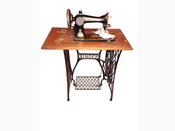Antik Singer Symaskin med Bord och Lock