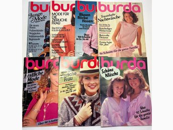 Retro Burda tidningar 1984 och 1985, sömnadsmönster, mönster, sy, tyska, tidning