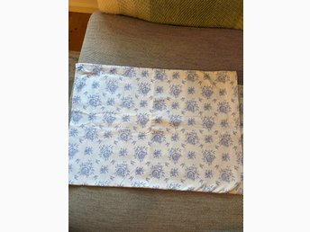Vitt tyg med blå rosor