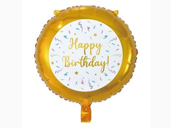 Ballong Happy Birthday Rund Guld Folie