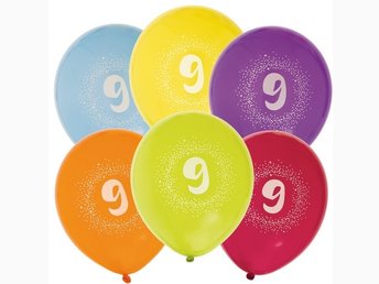 Ballong Födelsedag 9 år 6-pack Latex Mixade