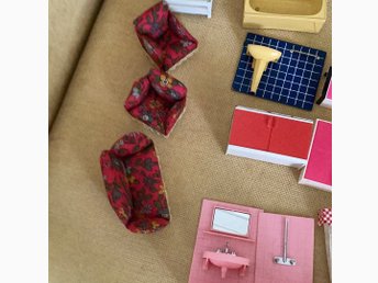Dockskåpsmöbler, bord och stolar till dockskåp, 70-tal retro