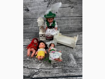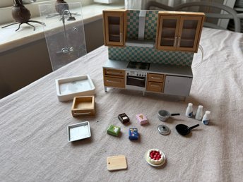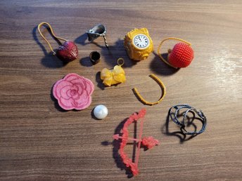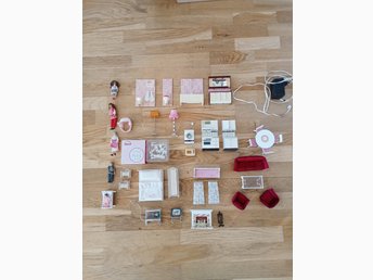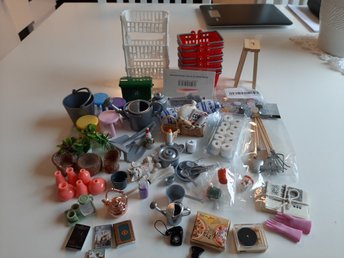 Parti med miniatyrer och dockhustillbehör i olika skalor