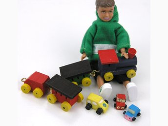 NY! Bilar 3st & Tågset 4delar i Lundby skala Dockskåp -hus miniatyr Lundbyskala