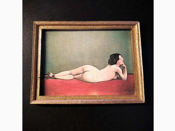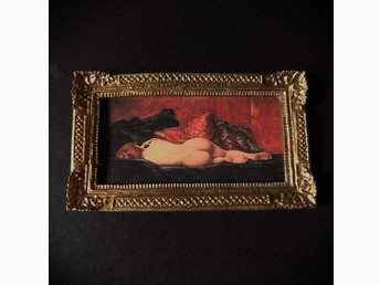 Miniatyr tavla - Naken dam - tittskåp dockskåp dockhus 1:12