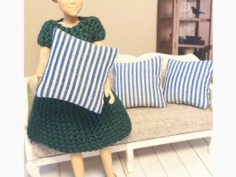 4 st Kuddar randig inredning textil ny dockhus miniatyr bomull