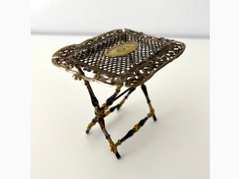 Antikt franskt/tyskt dockskåpsbord/brickbord i metall