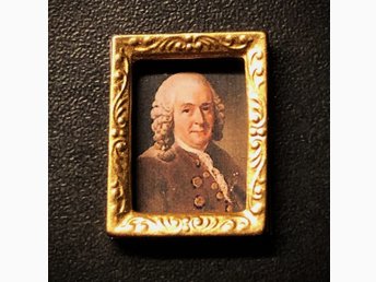 Miniatyr tavla Porträtt Carl von Linné av Roslin dockskåp dockhus 1:12 Lundby
