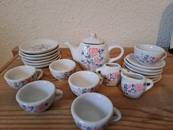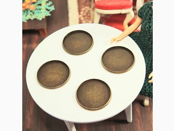 Set med fyra tallrikar i metall Lundby skalan 1:18 Porslin servis antik