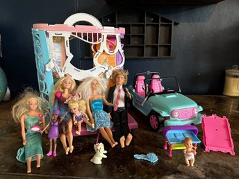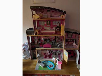 Barbie Dockhus med ett gäng möbler, pool och en barbiebil