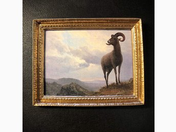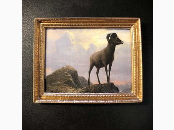 Miniatyr tavla 1800-tal Natur berg dockskåp dockhus tittskåp 1:12