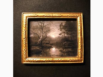 Miniatyr tavla Landskap i Månsken 1861 av G.E.O.Saal, dockskåp dockhus 1:12