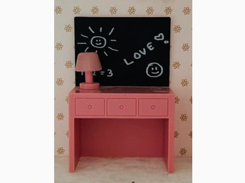 Lundby Dockskåpsmöbler - Skrivbord med lampa och griffeltavla
