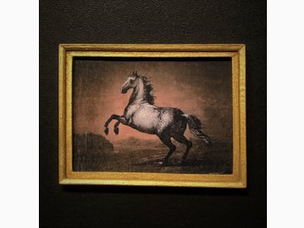 Miniatyr tavla - Karl XI:s häst Den Lille Engländaren 1680 dockskåp dockhus 1:12