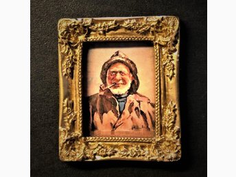 Miniatyr tavla Fiskargubben fiskare sjöbjörn dockskåp dockhus 1:12 Lundby