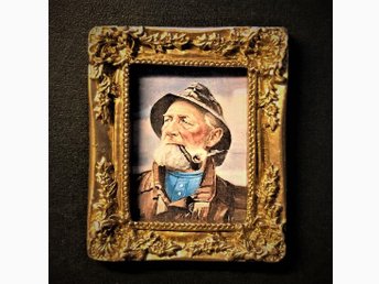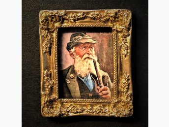 Miniatyr tavla Jägaren gubbe med pipa dockskåp dockhus 1:12 Lundby