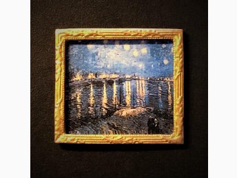 Miniatyr tavla - Starry Night over Rhone - dockskåp dockhus 1:12 Lundby